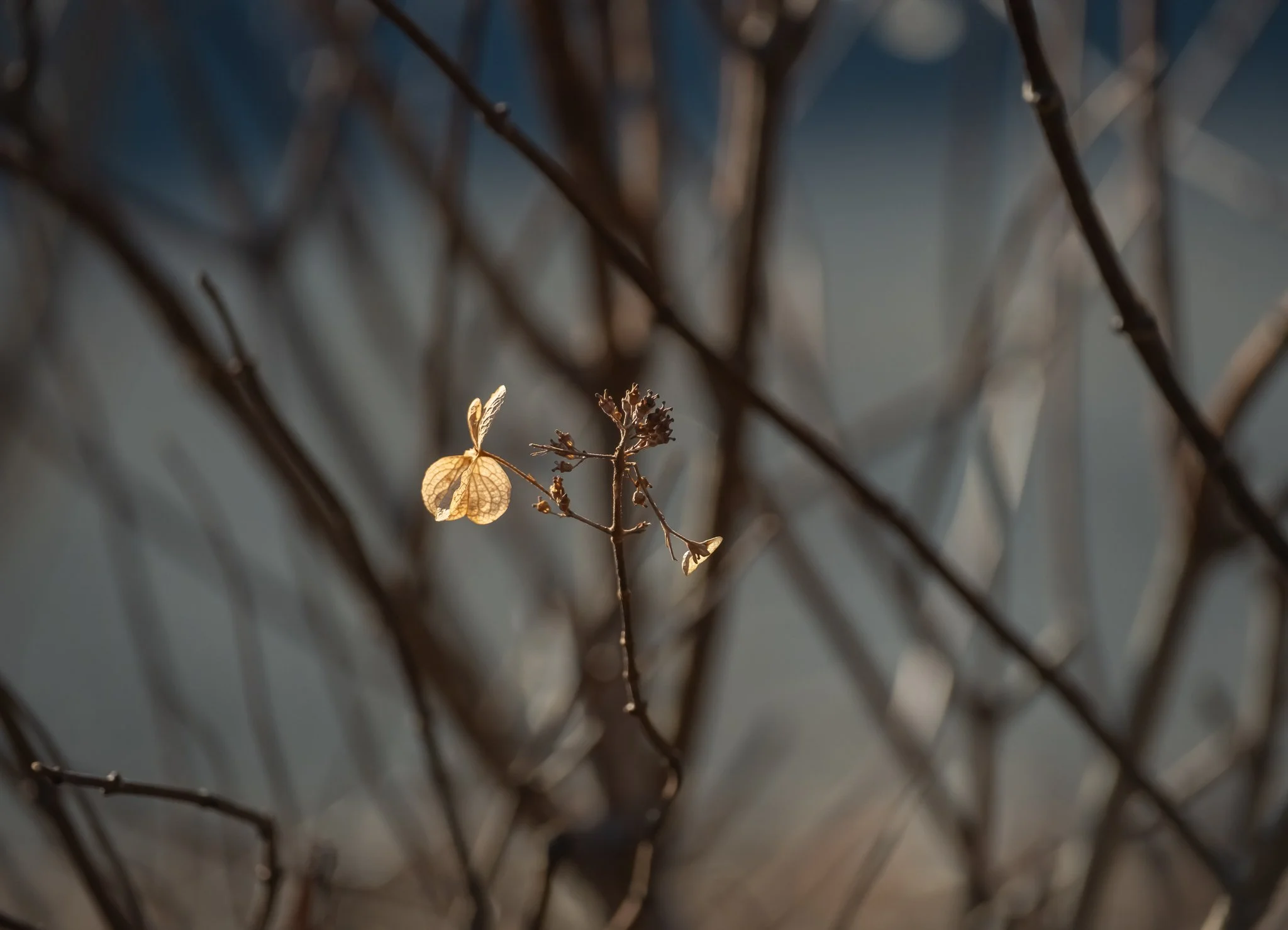 Winter light! The images in this post were all taken late in the afternoon on a cold winter day, out in the garden. The light was beautiful, and the dried flowers made an interesting subject.
